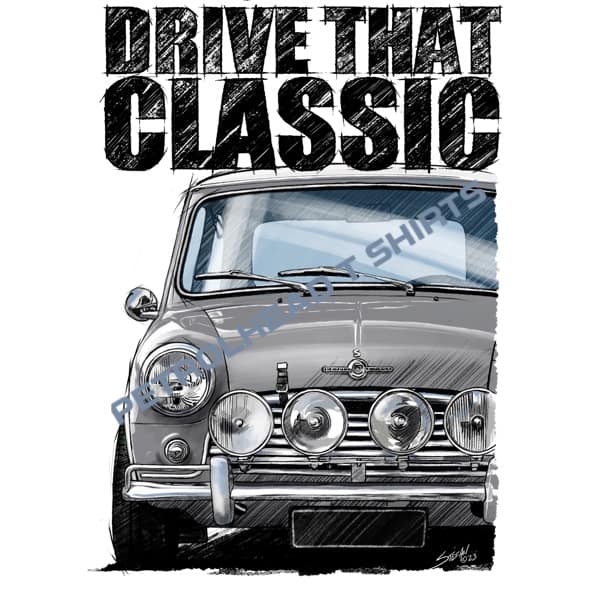 T Shirt with Drive that Classic Mini Cooper Mk1.