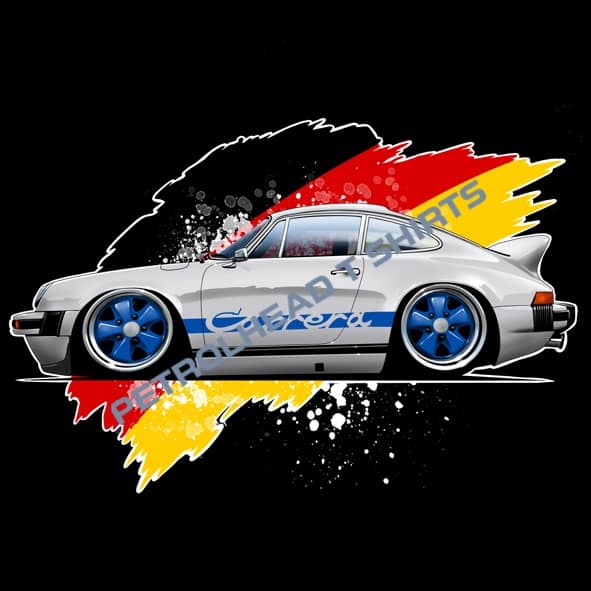 My “Drive that Classic” range with a Cartooned Porsche 911 Carrera on premium cotton T-shirts in various colors. This is my hand drawn art Individually printed on 100% Cotton T-Shirts. Only the best Direct to Garment process available is used to make it stand out from the crowd and assure you premium quality.
